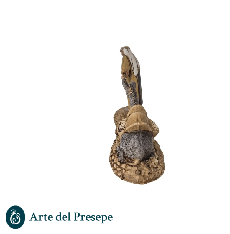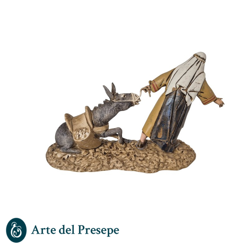 Il “Gruppo Fuga” è una delle scene più iconiche e dinamiche della collezione Landi Moranduzzo. Ideata dal maestro scultore Martino Landi, questa composizione cattura con estrema maestria la tensione e la fatica di un viandante che tenta di smuovere un mulo carico e ostinato. È l’elemento perfetto per chi vuole rompere la staticità del presepe con un dettaglio narrativo di grande impatto.